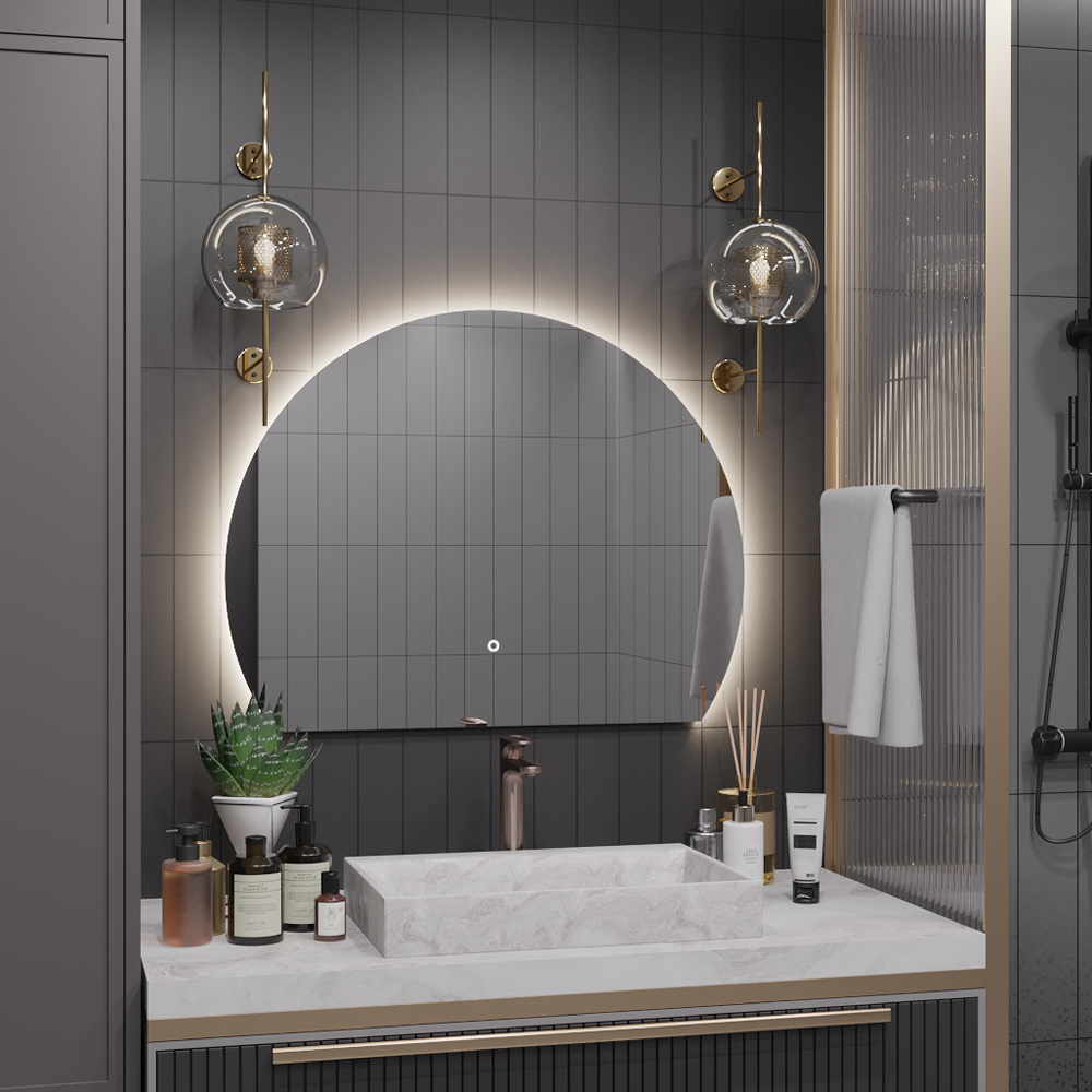 Зеркало круглое "парящее" Moon D90 для ванны с тройной LED-подсветкой Moon с тройной LED-подсветкой