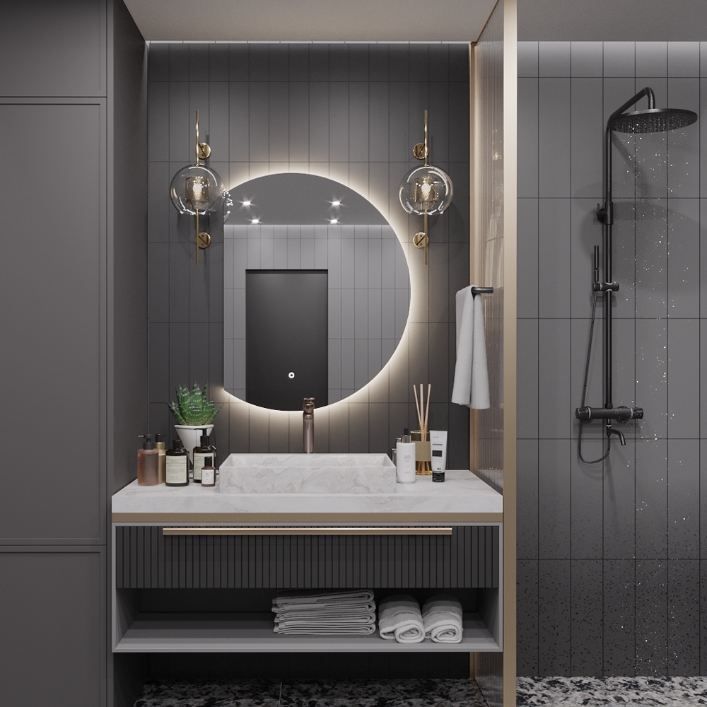 Зеркало круглое "парящее" Moon D50 для ванны с тройной LED-подсветкой Moon с тройной LED-подсветкой