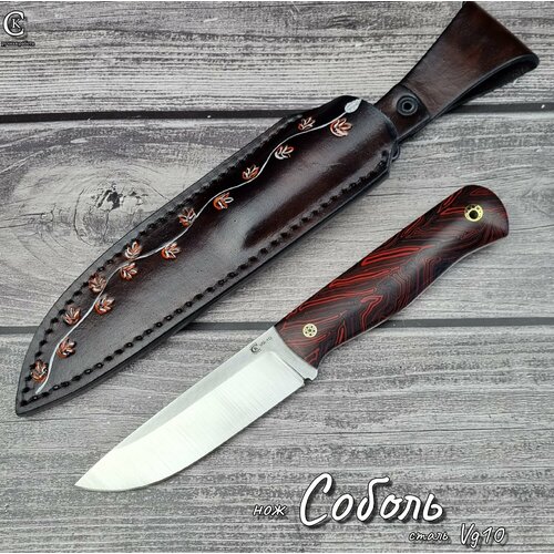 Нож Соболь из стали Vg10 с рукоятью G10 и ножнами из натуральной кожи от Кузницы Семина официальный производитель