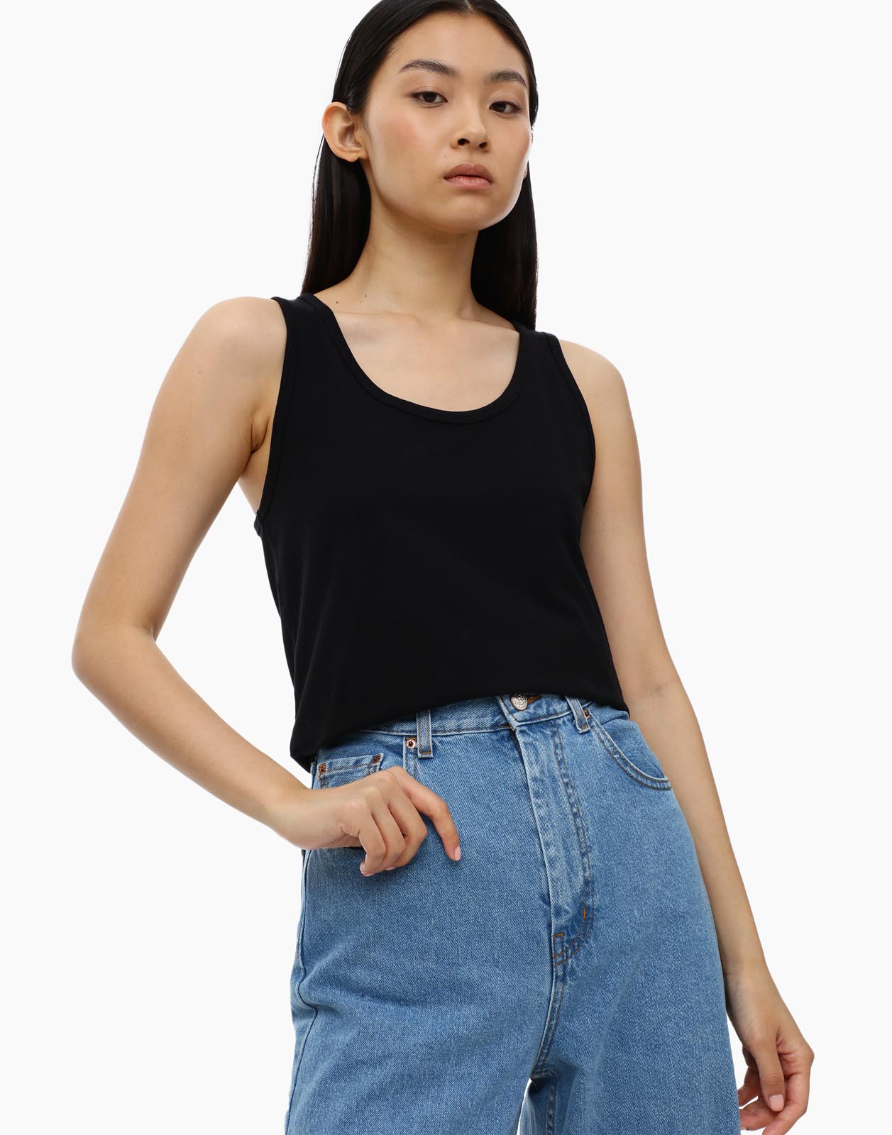 Добавь софт-гранжа в свои образы! Базовая облегающая майка с круглым вырезом изготовлена из хлопкового материала с рельефной фактур...