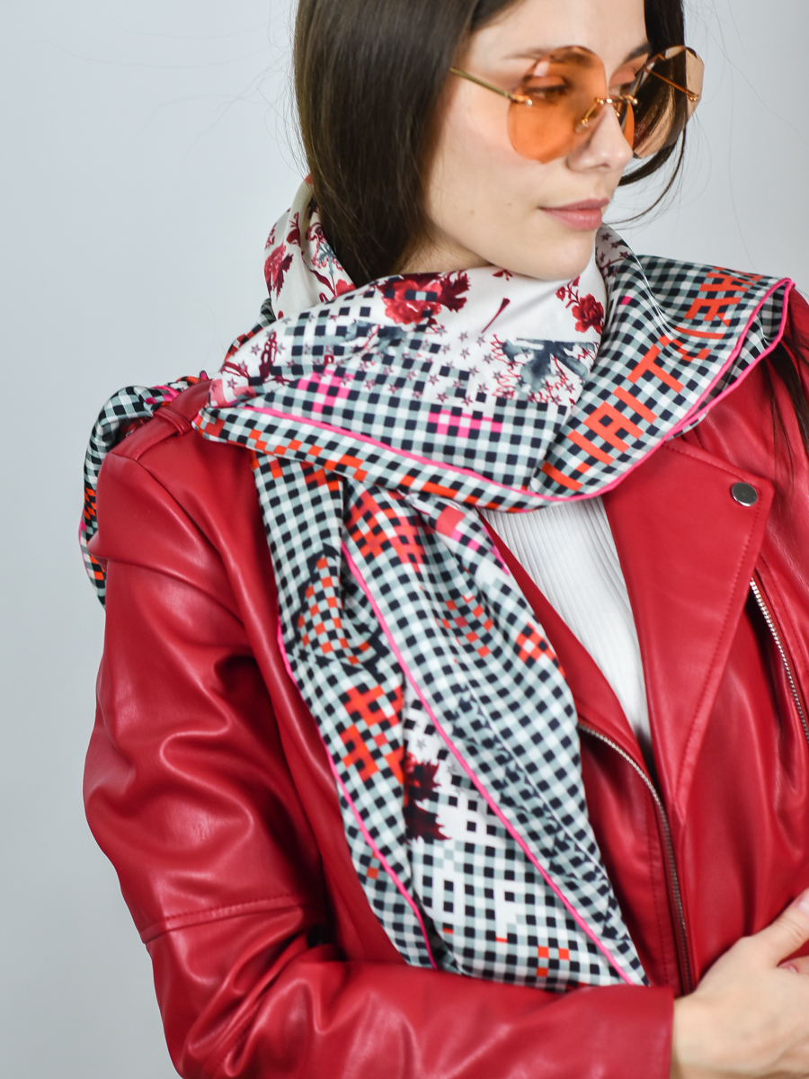 Клетчатый шарф из теплой шерсти с кожаной нашивкой