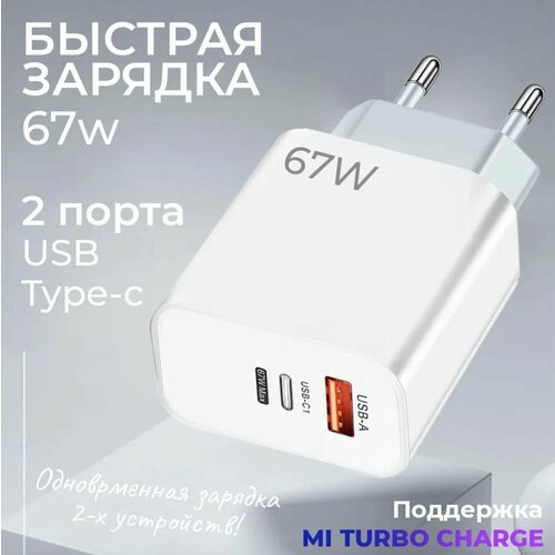 Зарядное устройство 67W c проводом Type-C в комплекте Блок питания + QC
