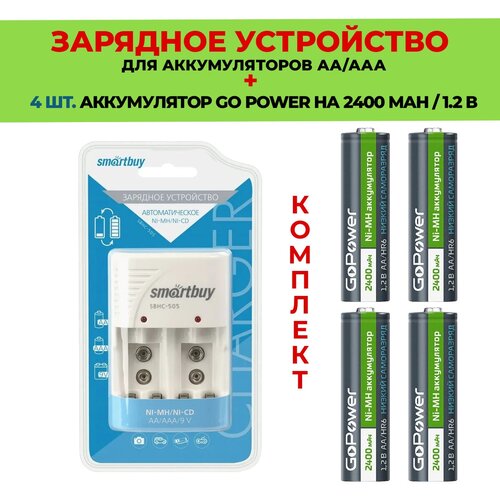 4 шт. аккумулятор на 2400 mAh+Зарядное устройство для аккумуляторов AАА/АА /Комплект SBHC-505 / Go Power 2400 mAh типа AA
