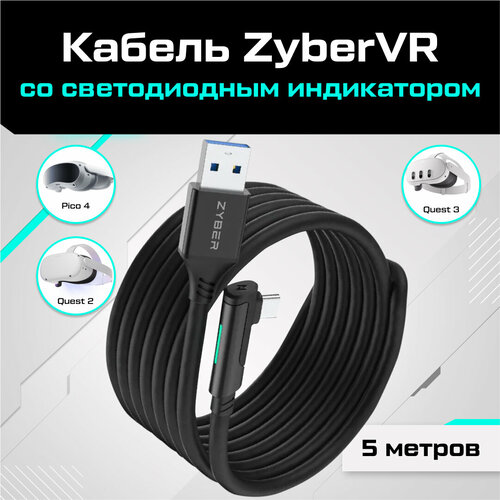 Кабель ZyberVR для Oculus Quest 3, Quest 2, Pico 4 со светодиодным индикатором