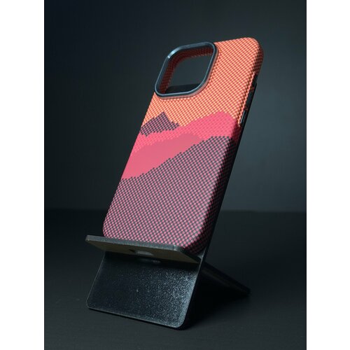 Чехол-накладка для Айфон 15 Про с МагСейф из Кевлара / чехол на iPhone 15 Pro с MagSafe Kevlar LUXO Life+ / MOSBROS, Красные горы, карбоновый