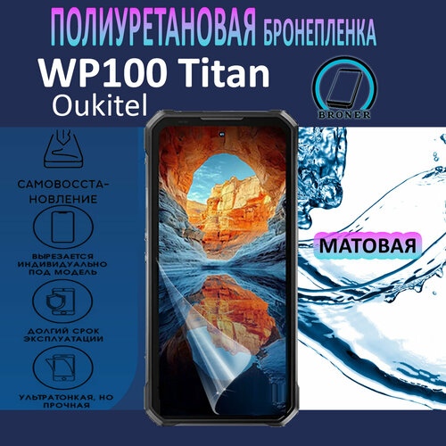 Полиуретановая бронепленка для Oukitel WP100, WP100 Titan / 2 штуки / Защитная плёнка на экран, совместима с чехлом, с вырезом под камеру / Матовая