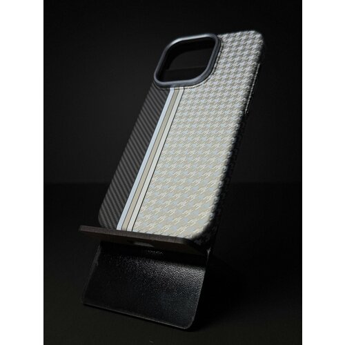 Чехол Айфон 15 Про / чехол iPhone 15 Pro с MagSafe LUXO Life+, карбоновый, серебристо-бронзовый, c полосой