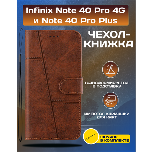 Чехол книжка wallet case на Infinix Note 40 Pro 4G и Note 40 Pro Plus (Тёмно-коричневая)