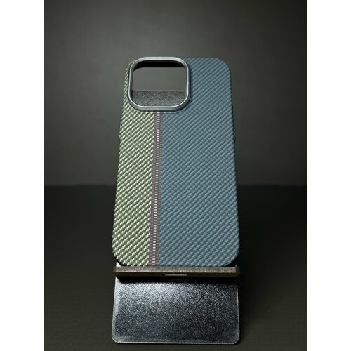 Чехол - накладка на Айфон 14 Про с МагСейф из Кевлара / Чехол - накладка на iPhone 14 Pro с MagSafe Kevlar LUXO Life+ / MOSBROS, Сине-желтый с полосой, карбоновый
