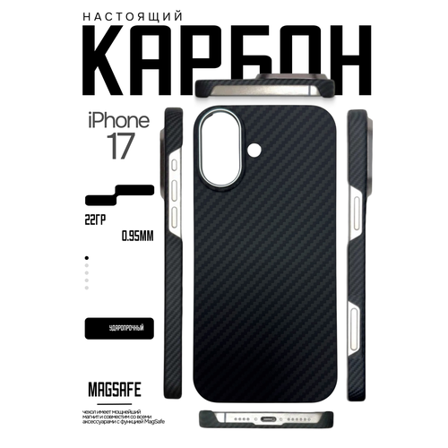 Чехол карбоновый для iPhone 17 с поддержкой беспроводной зарядки, сверхпрочный, лёгкий