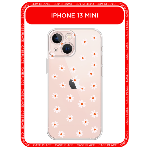 Чехол на Apple iPhone 13 mini / Айфон 13 мини с принтом Ромашки, прозрачный