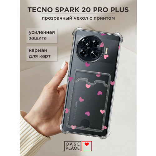 Чехол на Tecno Spark 20 Pro Plus (Текно Спарк 20 Про Плюс) с картой и принтом Фиолетовые и розовые сердечки