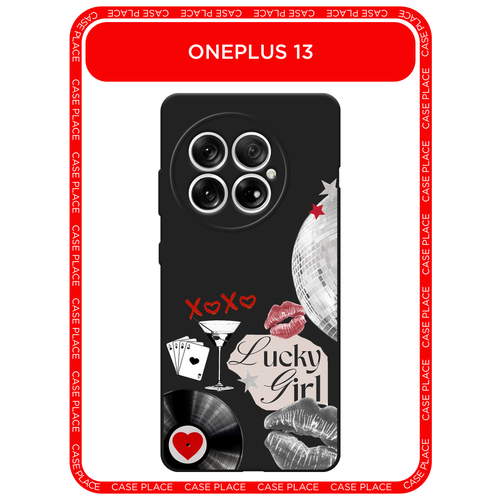 Черный матовый чехол на OnePlus 13 / Ван Плас 13 с принтом xoxo lucky girl