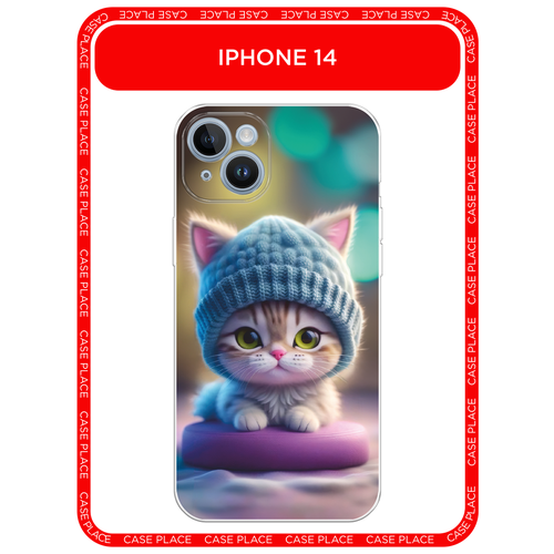 Чехол на Apple iPhone 14 / Айфон 14 с принтом Котик в голубой шапочке