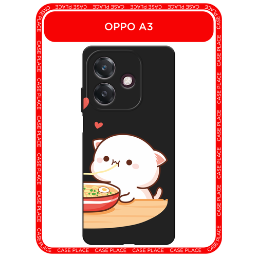 Черный матовый чехол на Oppo A3/A3x / Оппо А3/A3x с принтом Белый котик с лапшой