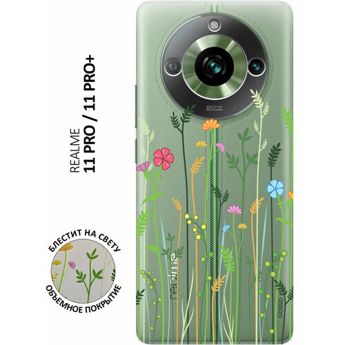 Силиконовый чехол на Realme 11 Pro, 11 Pro+, Рилми 11 Про, 11 Про + с 3D принтом "Flowers and Fern" прозрачный