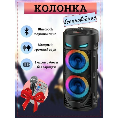 Колонка 6208 Bluetooth, Акустическая система с караоке и микрофоном, Беспроводная, Черный