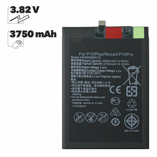 Аккумулятор 100% Filling Capacity для смартфонов Huawei P10 Plus/V10/Nova 3/Mate 20 Lite/Honor Play/8X/20 (HB386589ECW)