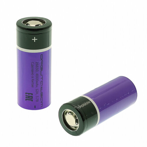 Аккумулятор 26650 (12А, 4000mA, 3.7В, плоский пин) перезаряжаемая батарейка 2шт
