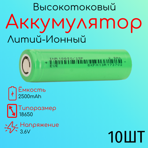 Аккумуляторная батарейка 18650, 2500 мАч, 10 шт