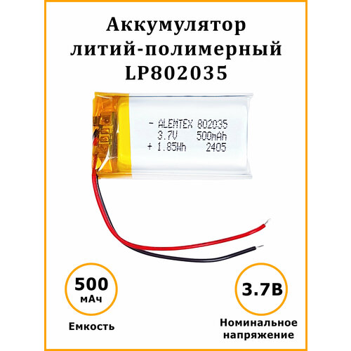 Литий-полимерный аккумулятор LiPo 802035 3.7В 500 мАч