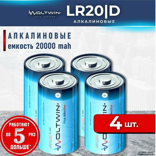 Батарейка алкалиновая, щелочная Woltwin Alkaline LR20, LR20P, UM1, R20, D, 373 - 4 шт.