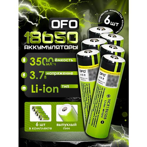 Аккумулятор OFO NCR18650 Li-ion 3.7V 3500mAh с выпуклым плюсовым контактом (6 шт)
