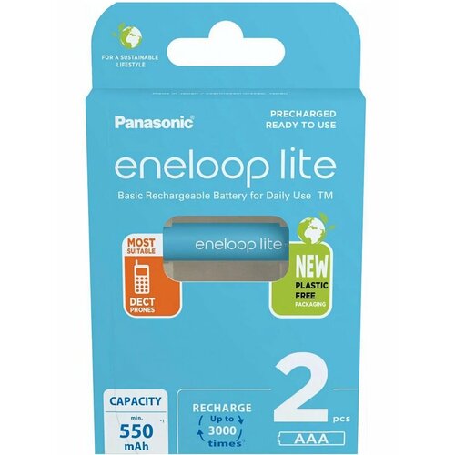 Батарейка аккумуляторная Panasonic Eneloop Lite AAA BL2, BK-4LCCE/2CP (напряжение: 1,2 В, емкость: 550 мА·ч)