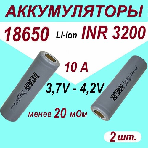 Литий-ионный аккумулятор 18650 с высокой емкостью 3200 мАч , 10A, менее24 мОм предназначен для сборки аккумуляторных батарей (АКБ) с высокими и длительными токовыми нагрузками (до 10А) для аккумуляторного шуруповёрта, перфоратора, другого аккумуляторного электроинструмента, пылесоса, робота-пылесоса, электроскутера, электробайка, фонаря, пауэр-банка и других устройств.