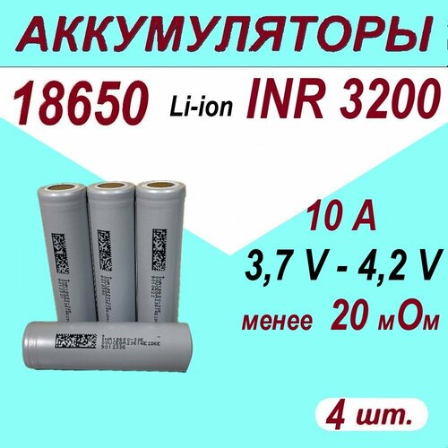 Аккумулятор 18650 с высокой емкостью 3200 мАч , 10 A, менее 24 мОм, 3.6 V, комплект 4 шт