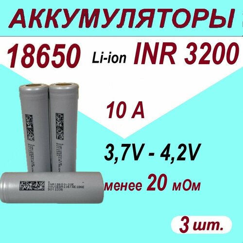 Аккумулятор INR18650-32E-S-3200 mAh,10A, менее 20 мOм, комплект 3 шт