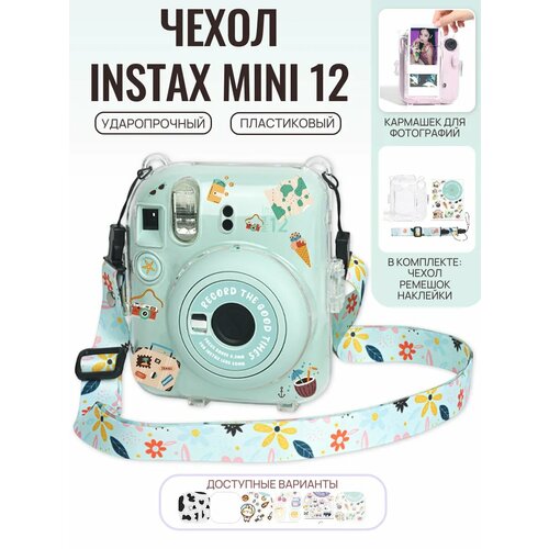 Чехол для фотоаппарата Instax Mini 12, прозрачный, пластик, противоударный, 1 шт