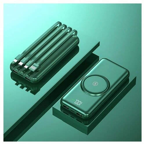 Внешний аккумулятор Power Bank 20000mAh с беспроводной зарядкой и встроенными кабелями