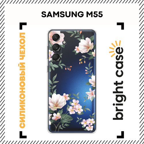 Чехол на Samsung Galaxy M55 / Самсунг M55 с принтом С цветами белыми, прозрачный