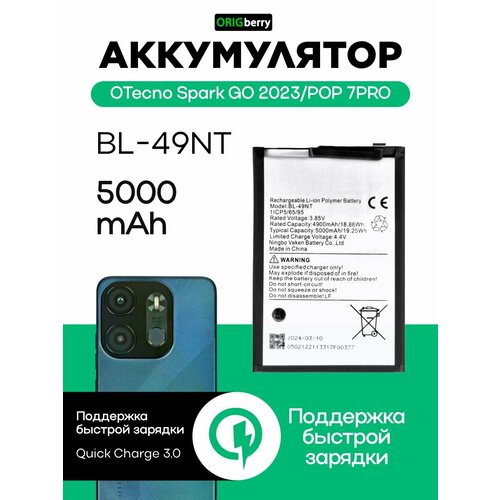 Аккумулятор для смартфона TECNO Spark GO 2023-2024/POP 7PRO 5000 mAh (BL-49NT)