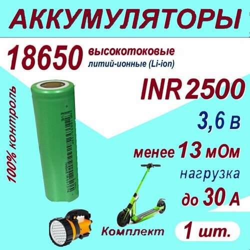 Аккумулятор 18650 Z литий-ионный (Li-ion) INR 2500 высокотоковый, 30A, 13 мОм, комплект 1 шт.