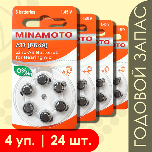 Minamoto 13 Оранжевый (ZA13) | 1.45 Вольт, Воздушно-цинковые (ZincAir) батарейки для слуховых аппаратов - 24шт.