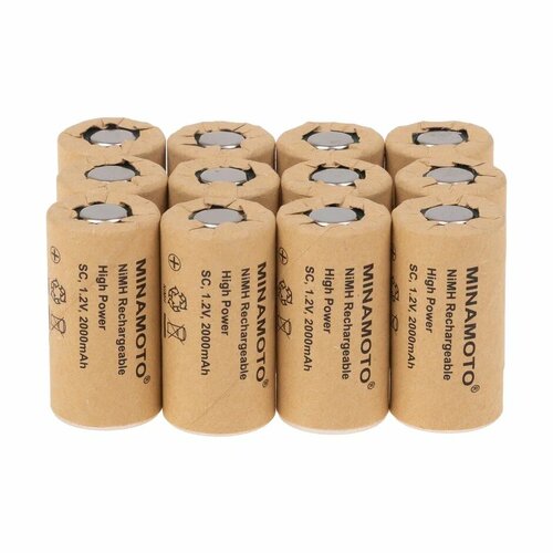 Аккумулятор MINAMOTO MН-2000SC/НР, NiMH, 1.2 В, 2000 мАч (набор/ комплект из 6 штук)для ремонта и изготовления аккумуляторных сборок, или отдельного использования. Применяются в аккумуляторах шуруповертов / перфораторов / электро-отверток / дрелей / роботов пылесосов / фонарей / игрушек и другой аккумуляторной техники и источников питания.