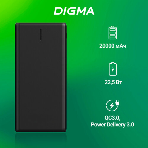 Внешний аккумулятор (Power Bank) Digma DGPF20A, 20000мAч, [dgpf20a22pbk]