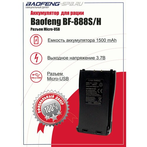 Аккумулятор для рации Baofeng BF-888S с разъёмом MICRO USB