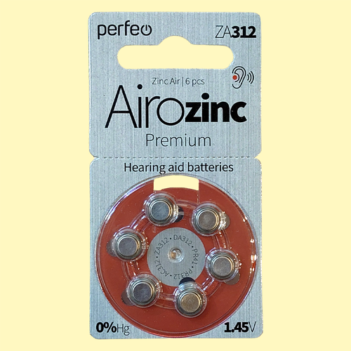 Perfeo 312 Коричневый (ZA312) | 1,45 Вольт Воздушно-цинковые Батарейки для слуховых аппаратов - 6шт.