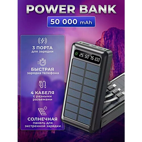 Powerbank "SOLAR ENERGY" 50000 mAh со Встроенными кабелями, Cолнечная батарея/Power bank solar energy/ внешний аккумулятор