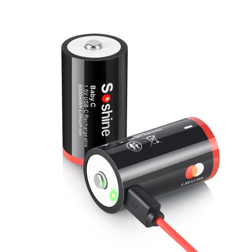 Soshine Аккумуляторные батарейки тип С 1.5V, 5000 mWh, 2 шт с зарядкой от USB кабеля.