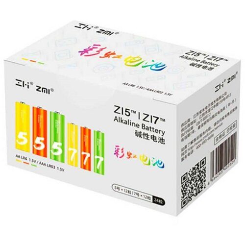 Набор алкалиновых батареек Xiaomi ZMI Rainbow (12 АА + 12 ААА), LR24-BOX, 1.5 В, 24 шт.