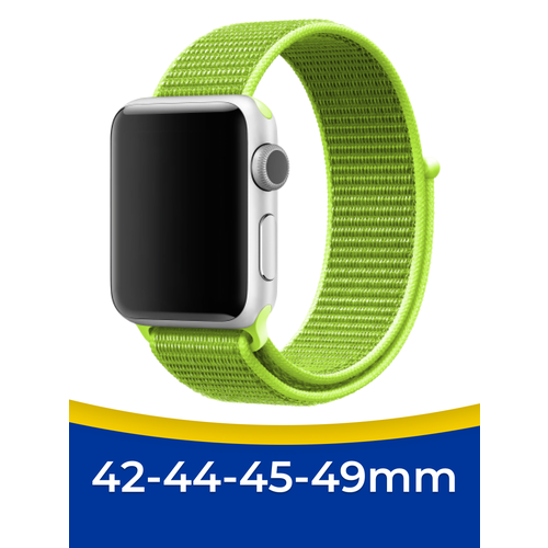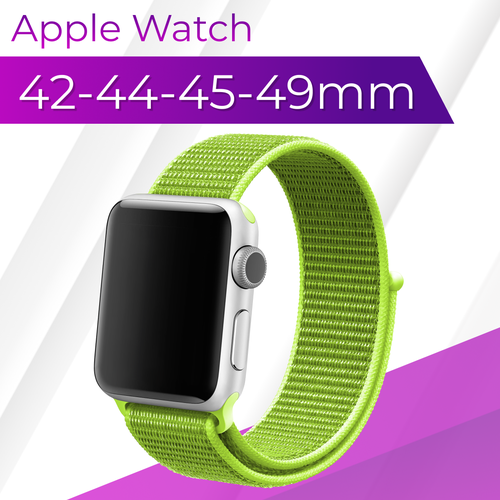 Нейлоновый ремешок для смарт часов Apple Watch 1-9, SE, Ultra 42-44-45-49 mm / Тканевый сменный браслет на умные часы Эпл Вотч 1-9, СЕ, Ультра / Лайм