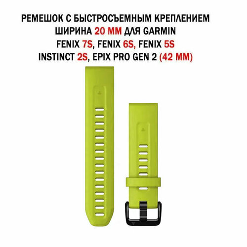 Ремешок для Garmin 22 мм силиконовый для Fenix 7/6/5/, MARQ, Forerunner 935/945/955, instinct QuickFit (Лайм)