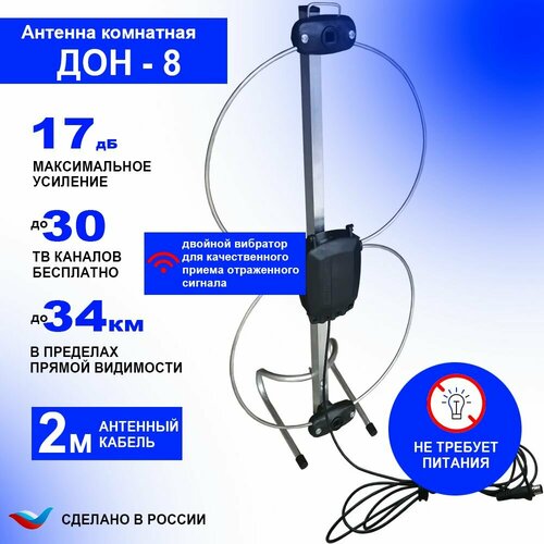 Антенна для цифрового тв комнатная для телевизора ДОН 8, пассивная для бесплатного цифрового телевидения антена помещений