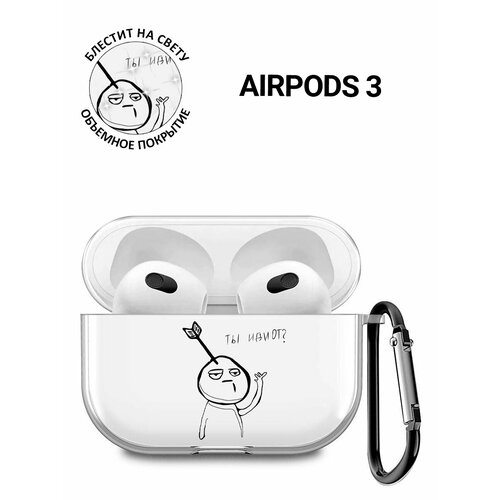 Прозрачный чехол для наушников Apple AirPods 3 с 3D принтом "Idiot?"