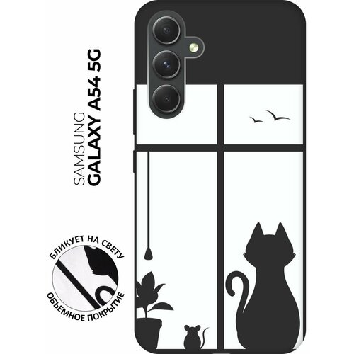 Матовый чехол Cat and Mouse для Samsung Galaxy A54 5G / Самсунг А54 с 3D эффектом черный