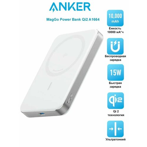 Anker MagGo Ultra-Slim 10000mAh Qi2 (A1664) сертифицированный Повербанк — это идеальное устройство для тех, кто ценит компактность ...
